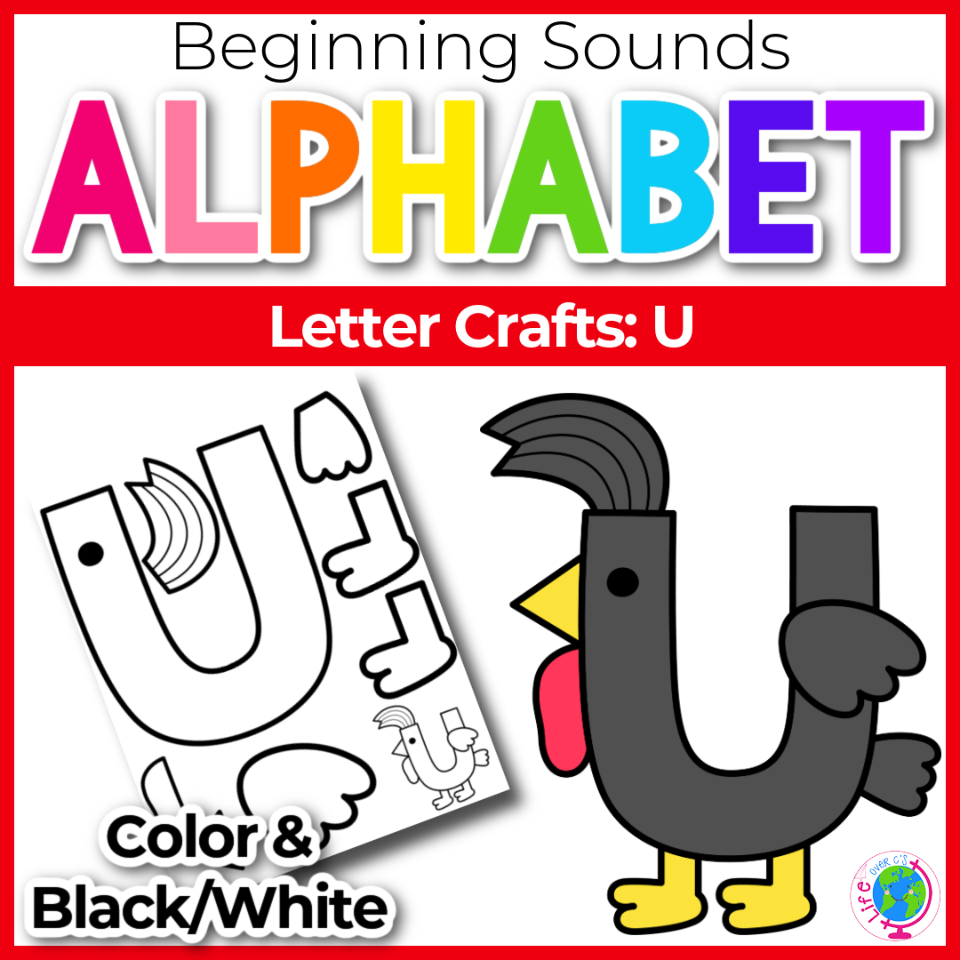 Each uppercase letter craft transforms into a playful character or object that starts with that letter’s sound. From alligator to zebra, these uppercase letter crafts give you a full year of alphabet fun with low-prep, printable templates in both color and black-and-white versions.