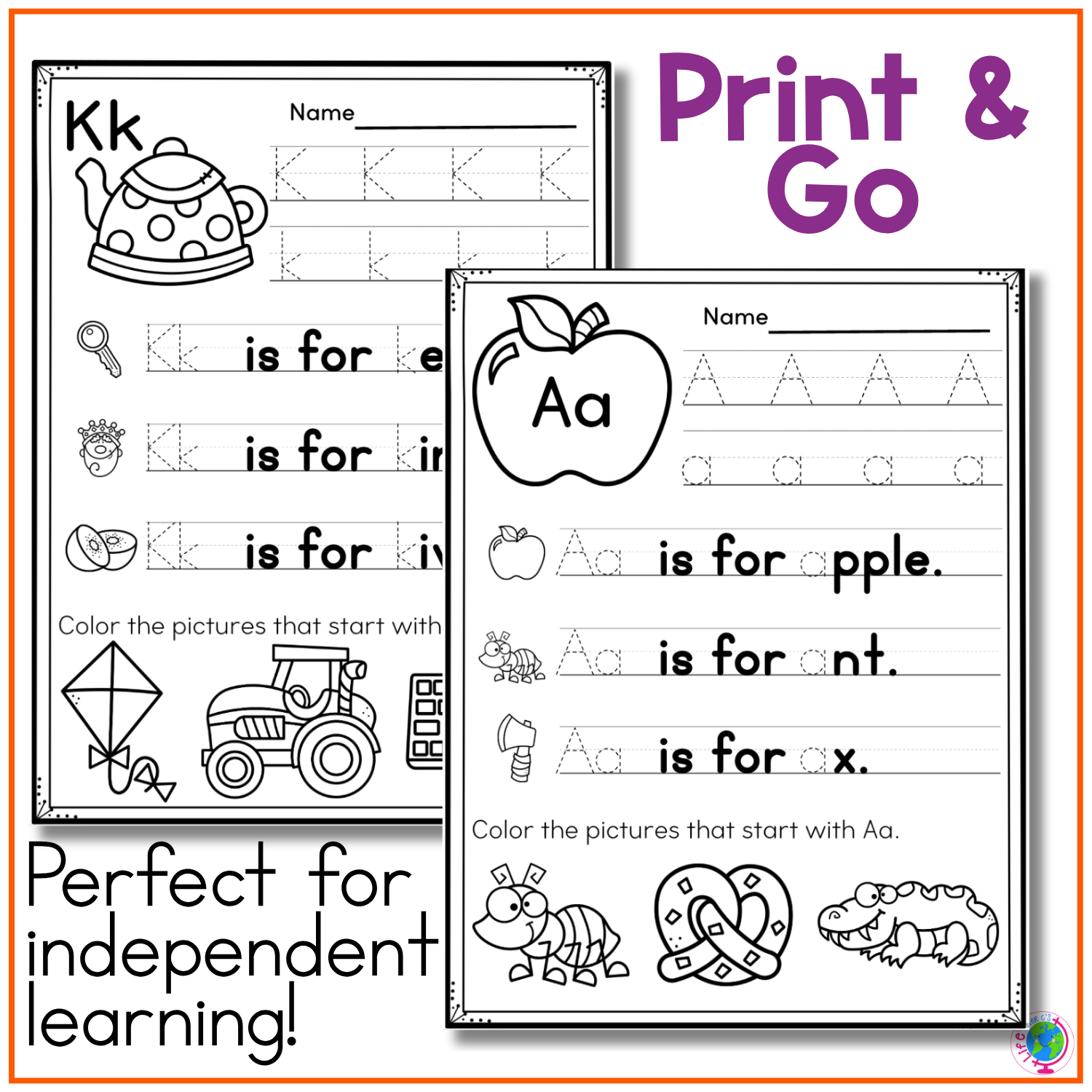 Whether you’re teaching in the classroom or at home, these worksheets are the ultimate low-prep solution for alphabet learning.