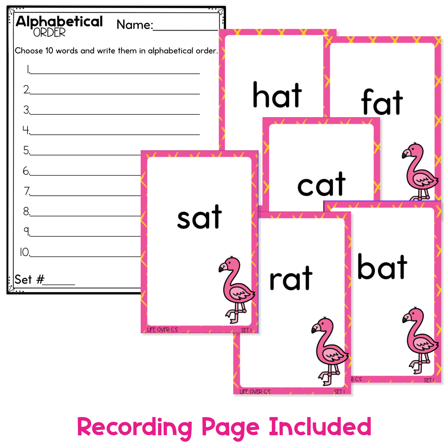 Alphabetical order card game deck labels and recording sheets help kids stay organized and keep track of their learning.