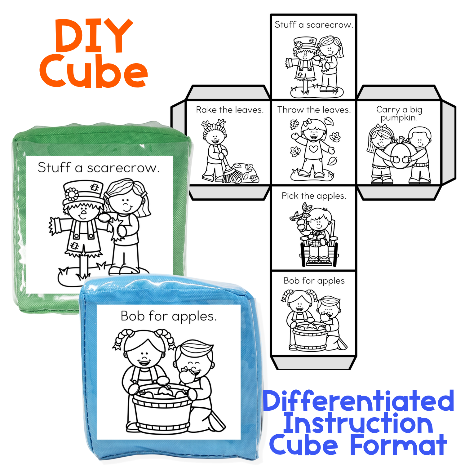 Print and insert the color or black/white cards into a differentiated instruction cube