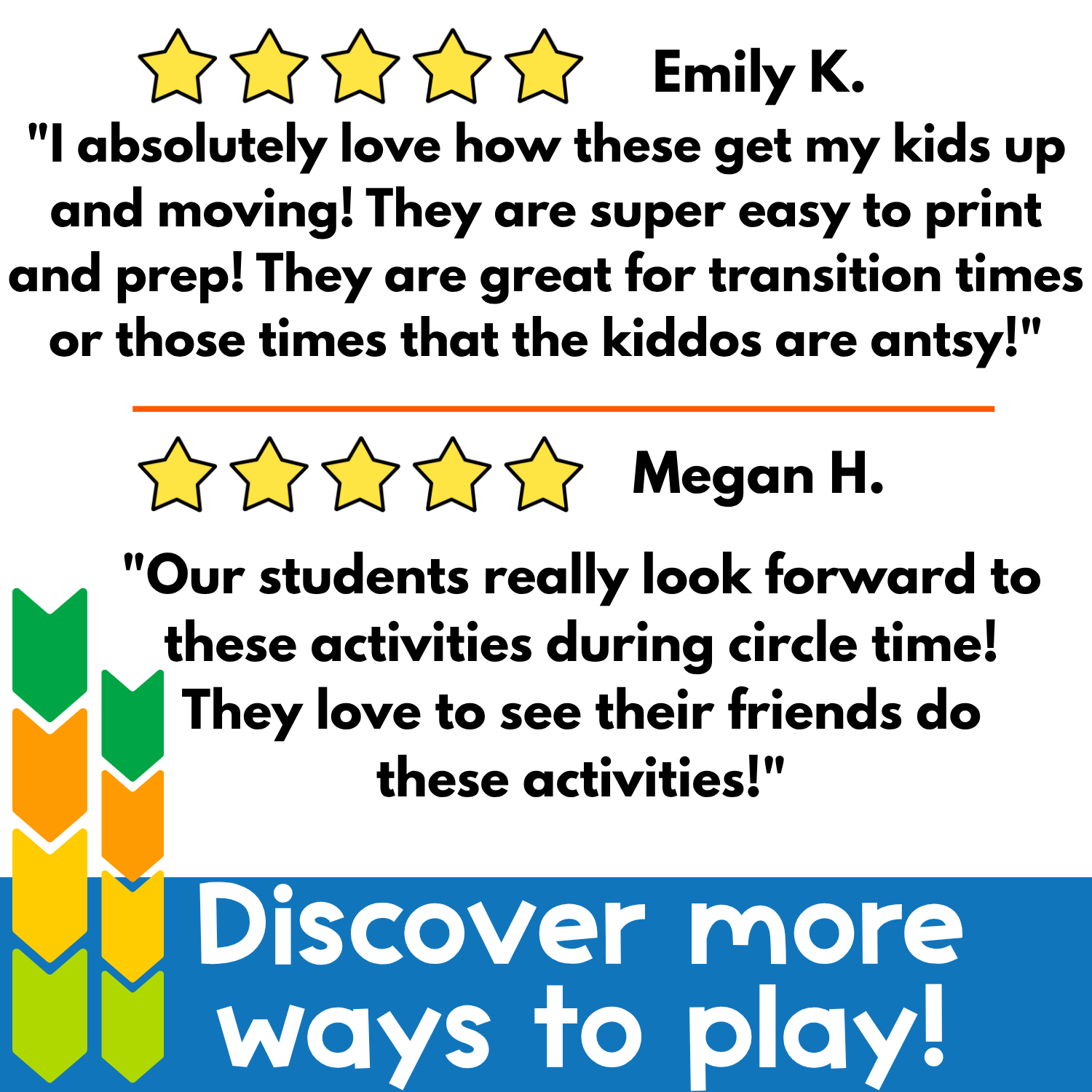 ⭐️⭐️⭐️⭐️⭐️ Melanie Z. wrote, “Love to use as brain breaks in the afternoon or when we have 10 minutes of extra time during the day.