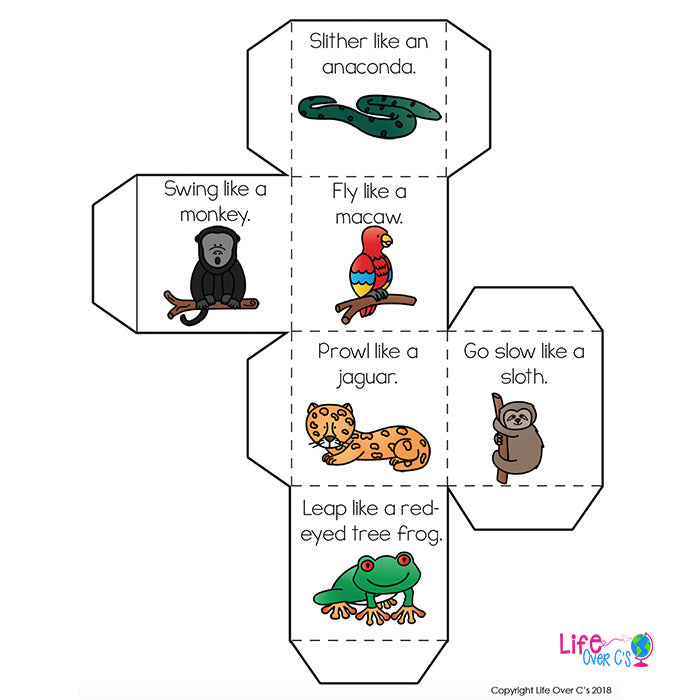 Work brain breaks into your regular daily activities with this simple Rainforest Animal Theme Brain Break Cube!
