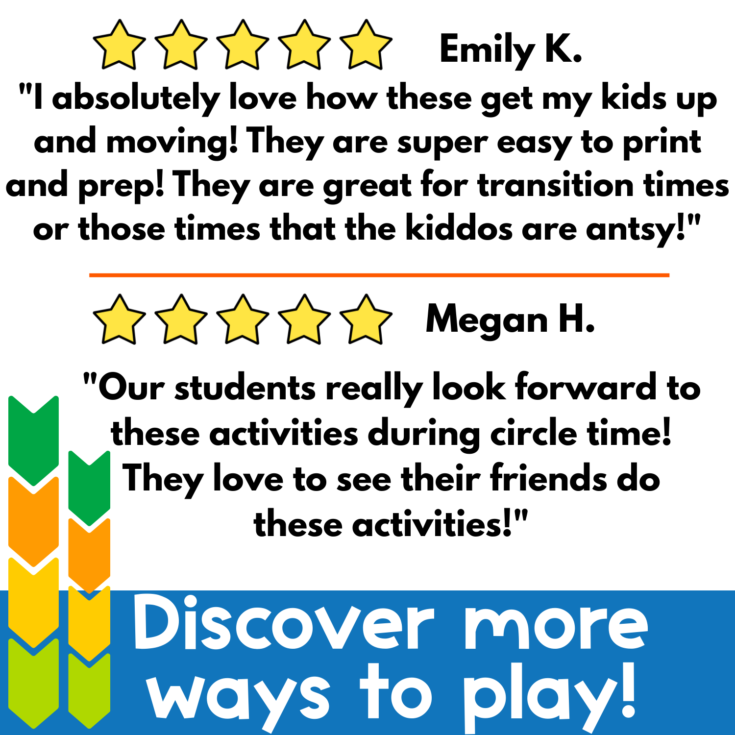 ⭐️⭐️⭐️⭐️⭐️ Melanie Z. wrote, “Love to use as brain breaks in the afternoon or when we have 10 minutes of extra time during the day.
