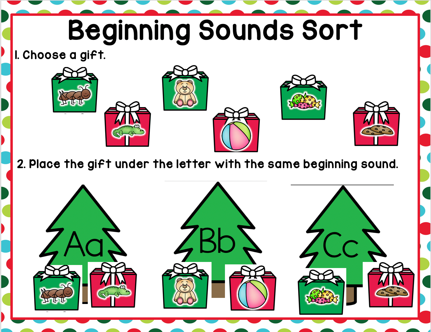 - Christmas Tree Letters and 2 Matching Beginning Sound Presents