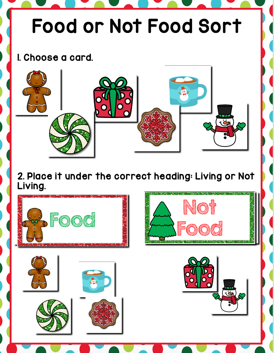 - Learn about Christmas objects while doing a fun Food/Not Food Sort
