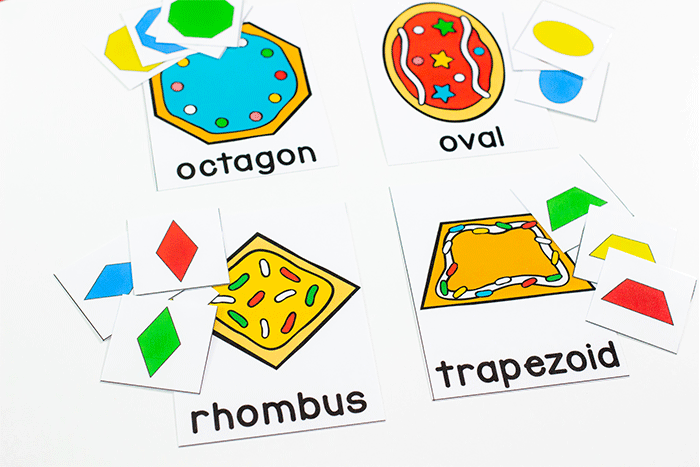 - Shapes included: Circle, Square, Rectangle, Triangle, Rhombus, Octagon, Trapezoid, Oval