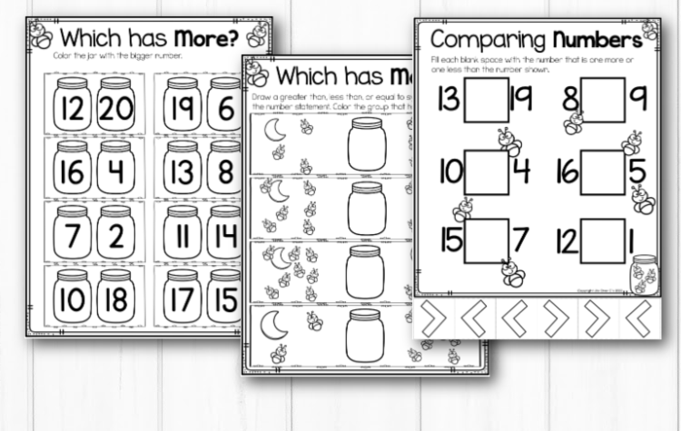 Which Has More? – Identify the greater of two numbers or quantities (with adorable firefly jars!)