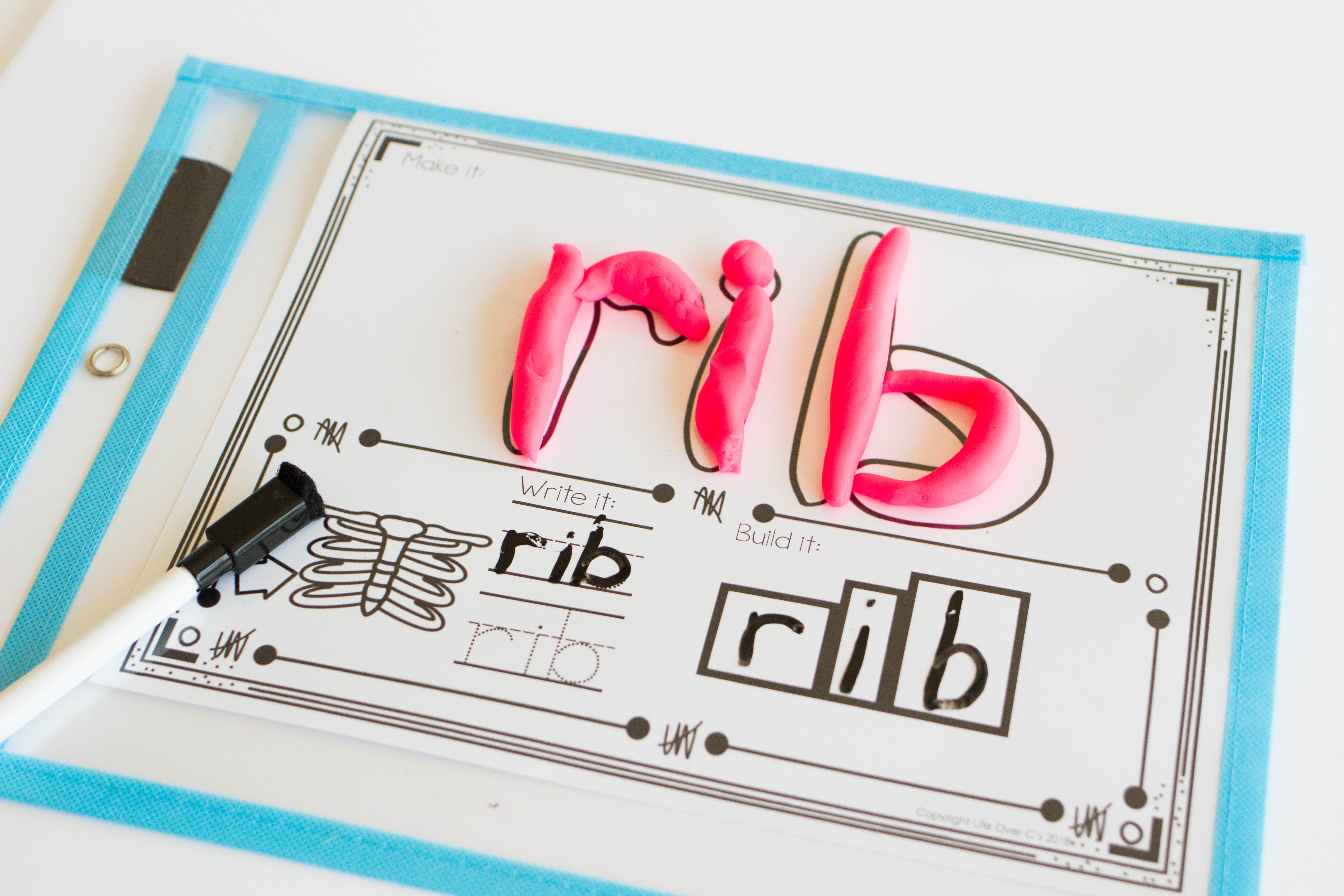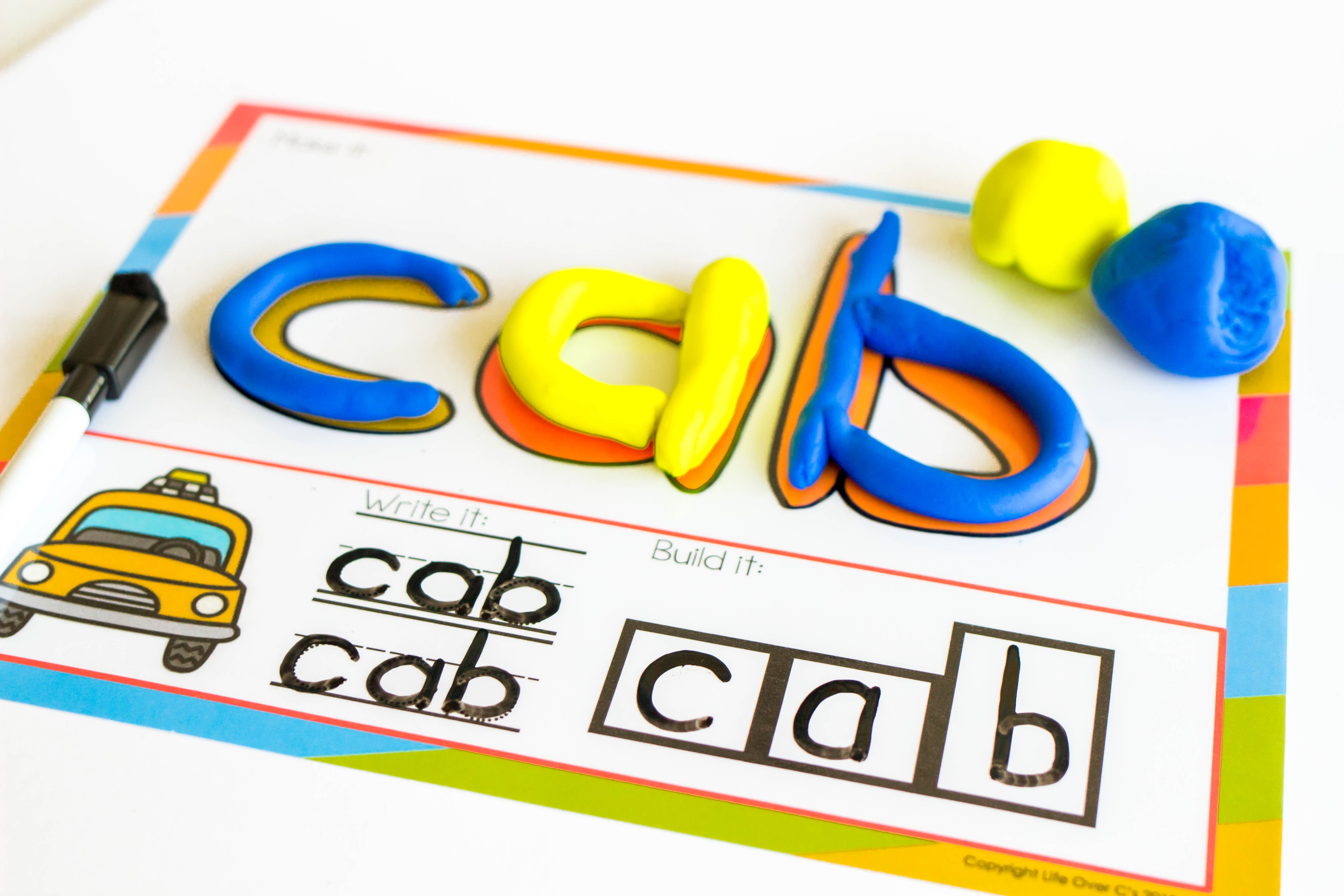 This no-fuss printable CVC Words Play Dough Mat set comes with:
