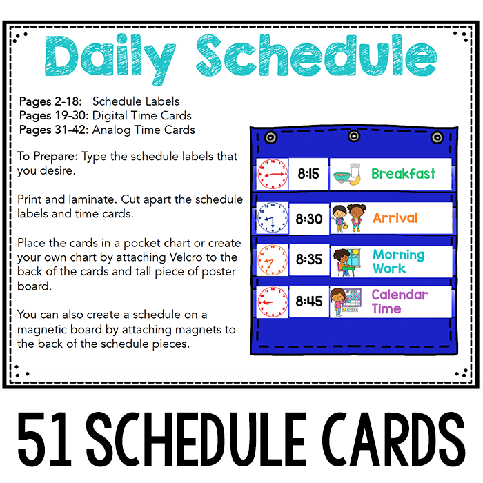 These Editable Schedule Cards will help your students understand "What's next?" The time cards come in both analog and digital to help your students learn about telling time while learning what is happening in their daily schedule.