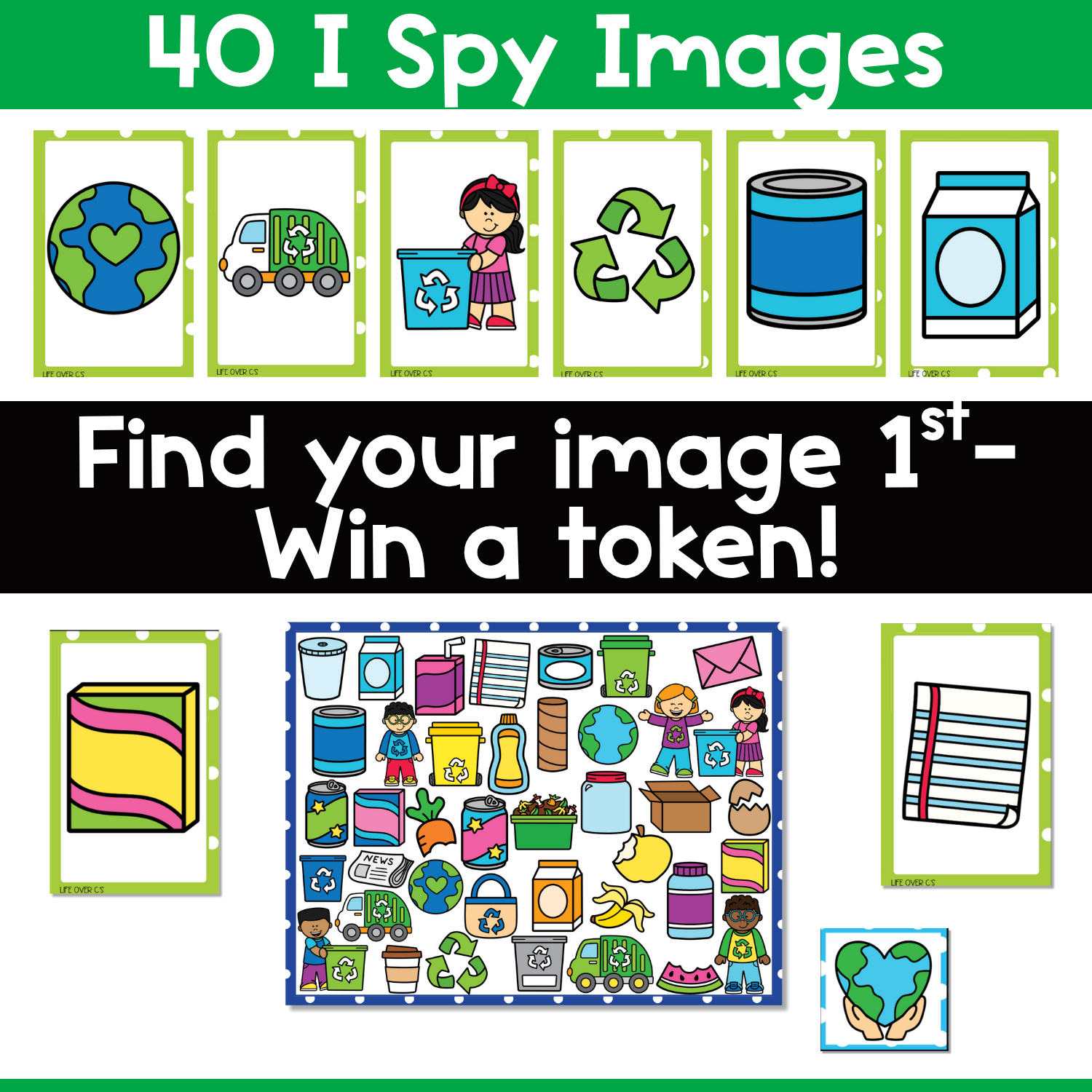 Packed with bright, hands-on fun, this recycling and compost-themed I Spy game helps preschool, kindergarten, and early elementary students strengthen vocabulary, visual discrimination, articulation, and attention skills while learning about taking care of our Earth.