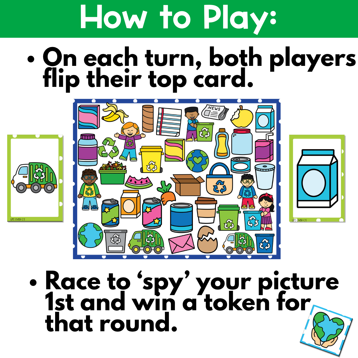 Your learners will be racing to spot recycling bins and compost piles while practicing vocabulary, visual skills, and cooperation all in one easy-prep activity.