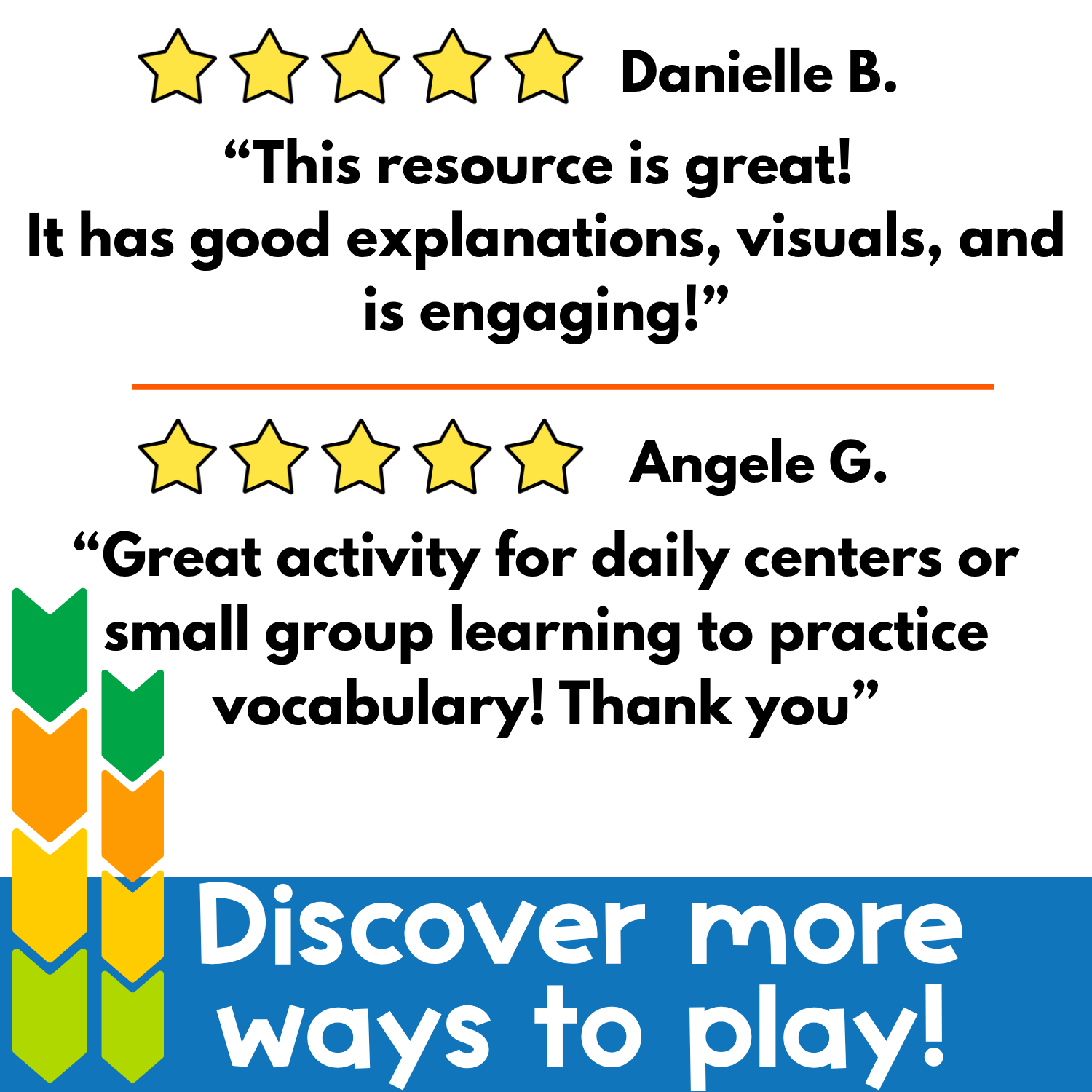 ⭐️⭐️⭐️⭐️ Christine H. wrote: “I used this as a vocabulary game with my RTI group. It was great to have new types of words… and a good tool to see which students could grasp words and images quickly.”