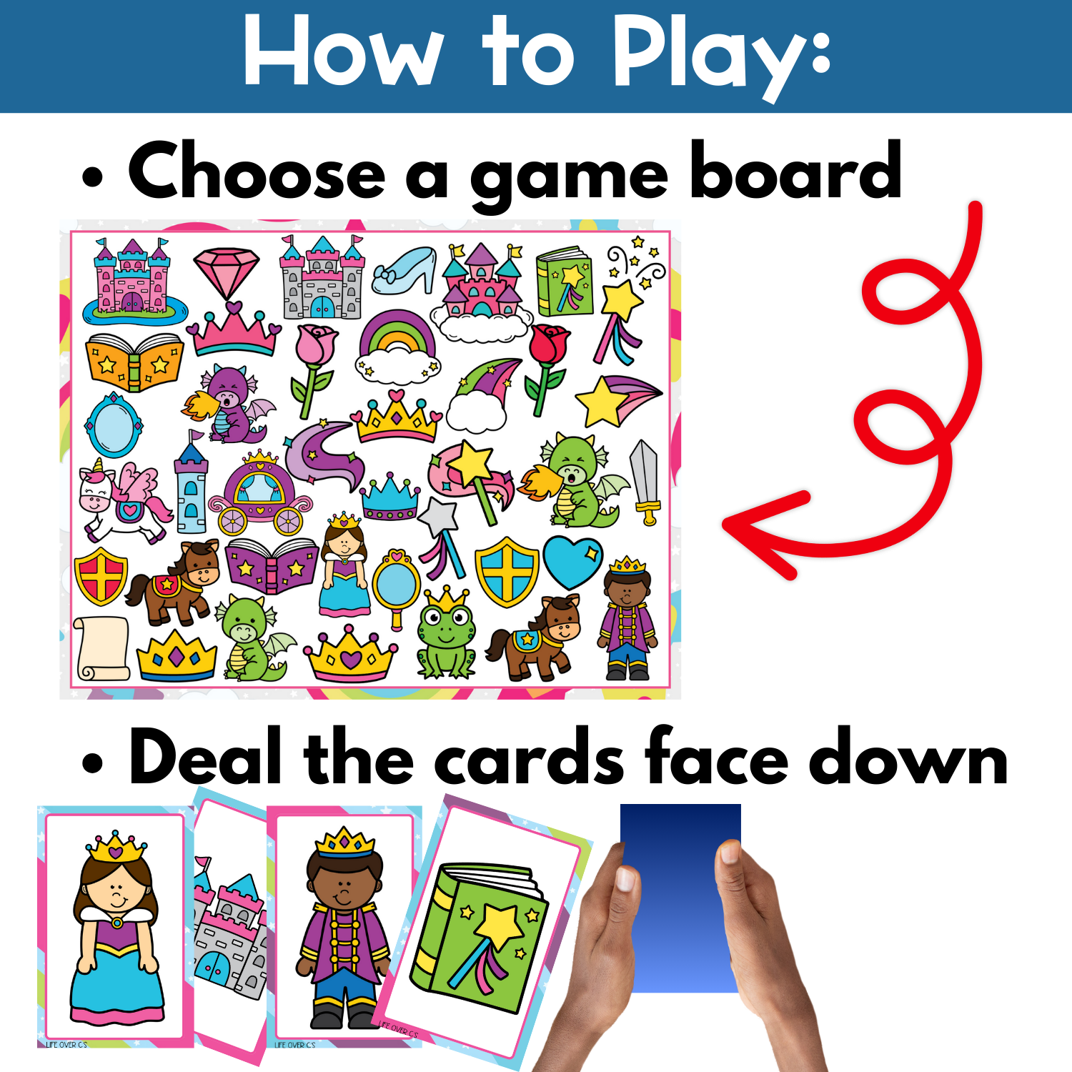 1. Choose a fairy tale game board filled with magical objects and place it in the center.