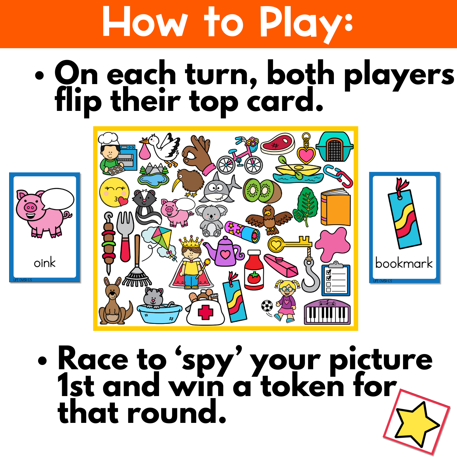 Whether you are working with small groups, planning ELL lessons, prepping sub plans, or leading speech therapy and OT sessions, this I Spy game keeps kids engaged while practicing important early literacy and vocabulary skills.