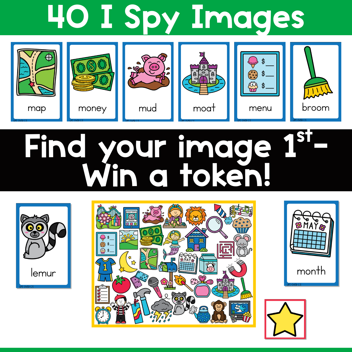 • Star tokens for tracking wins (or swap in your favorite mini erasers if you like)