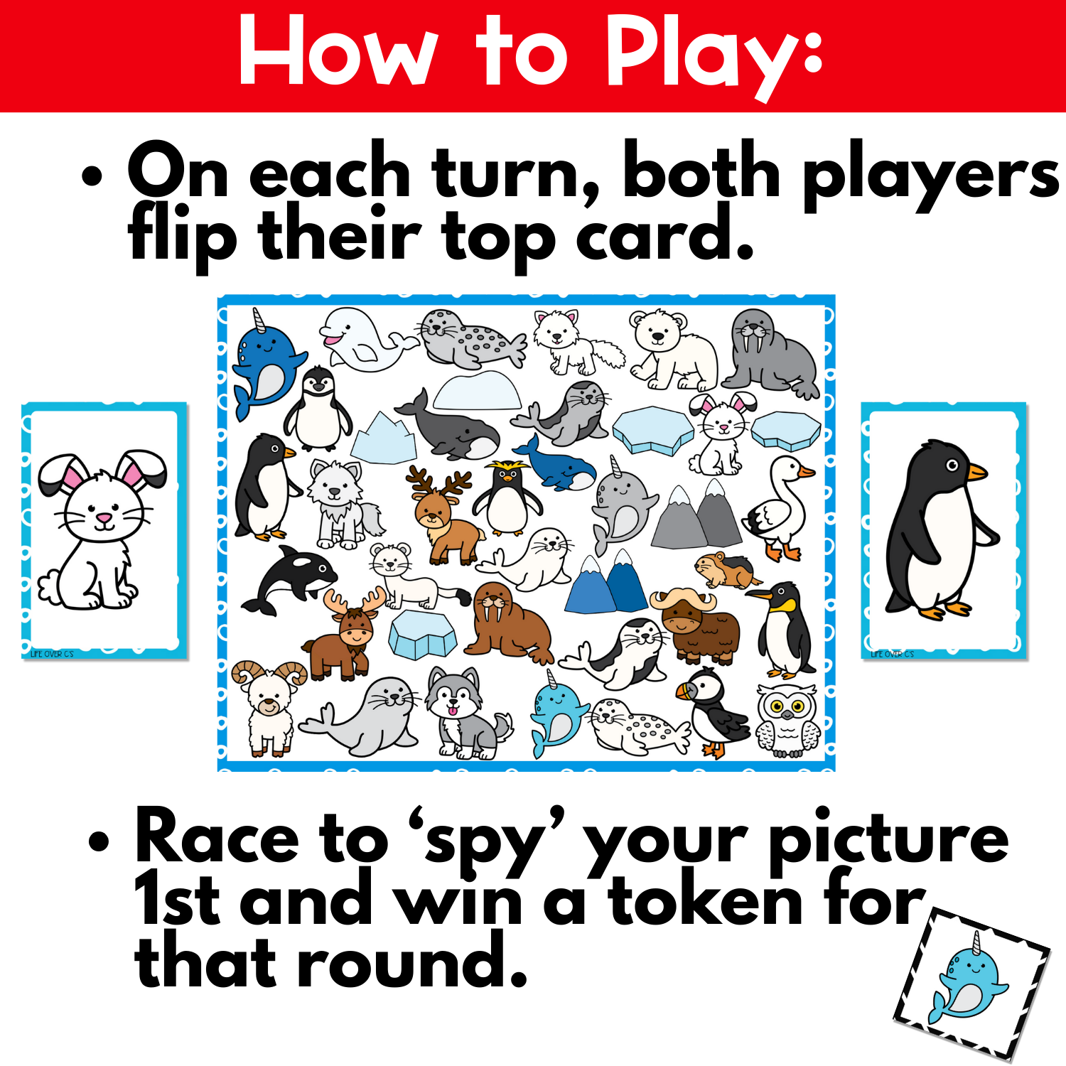 Polar animals and their habitats take center stage in this engaging I Spy Board Game!