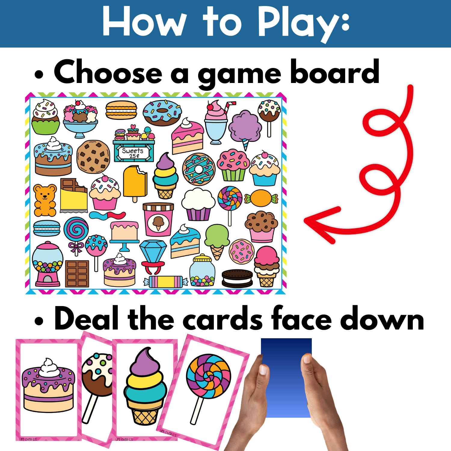 1. Choose a Sweets & Treats I Spy board and place it in the center.