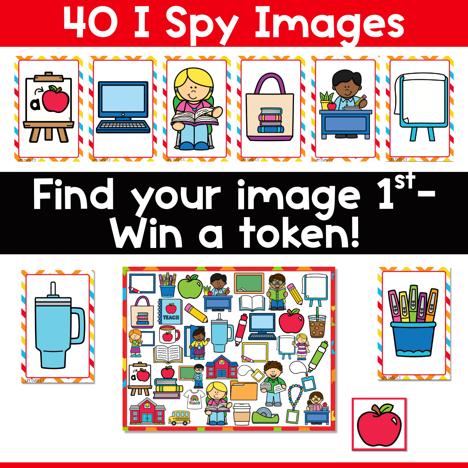• 10 colorful I Spy game boards featuring a variety of teacher and classroom scenes