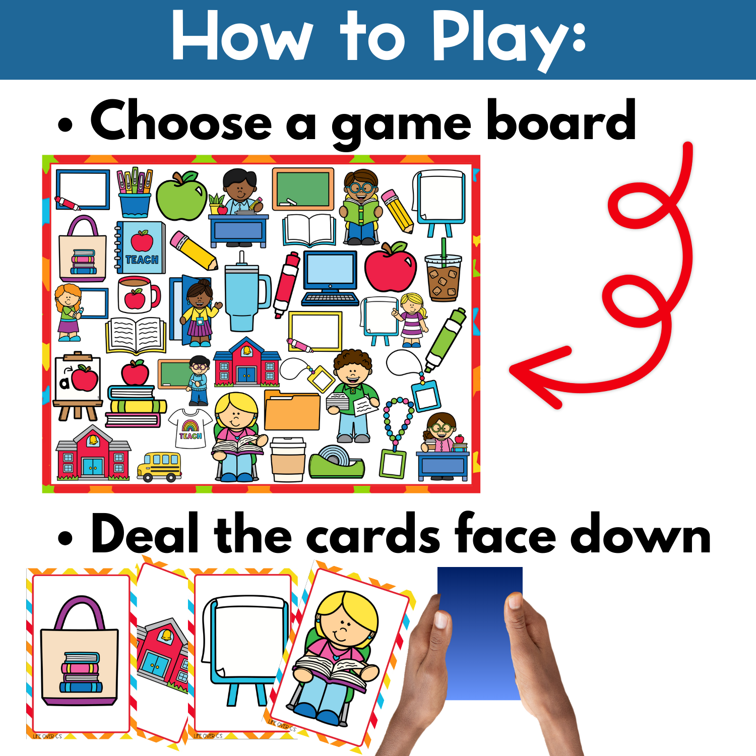 Packed with bright, engaging images of teachers, classrooms, and school supplies, this game is perfect for literacy centers, speech therapy, occupational therapy, ELL/ESL vocabulary practice, and sub plans.