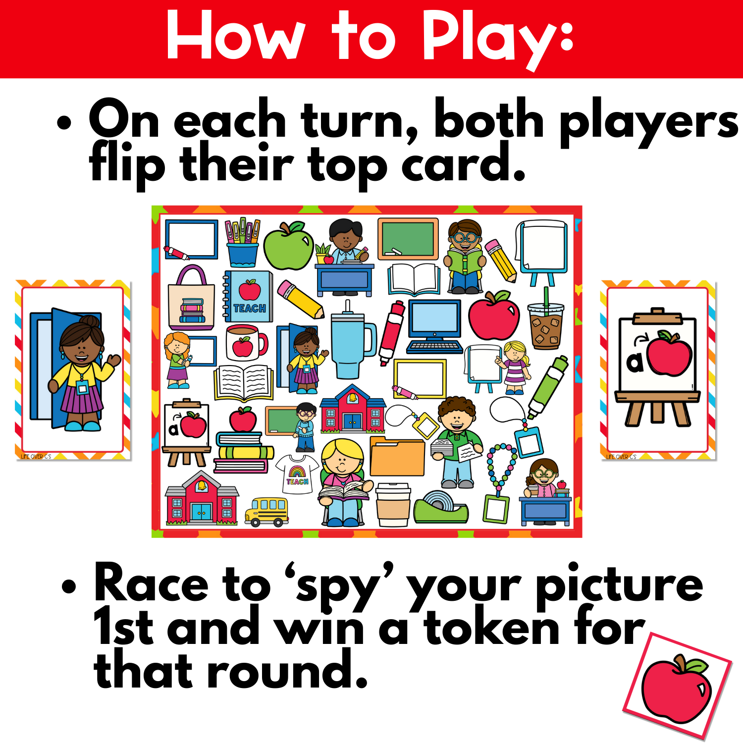 How to Play the Teacher Theme I Spy Flip Board Game: