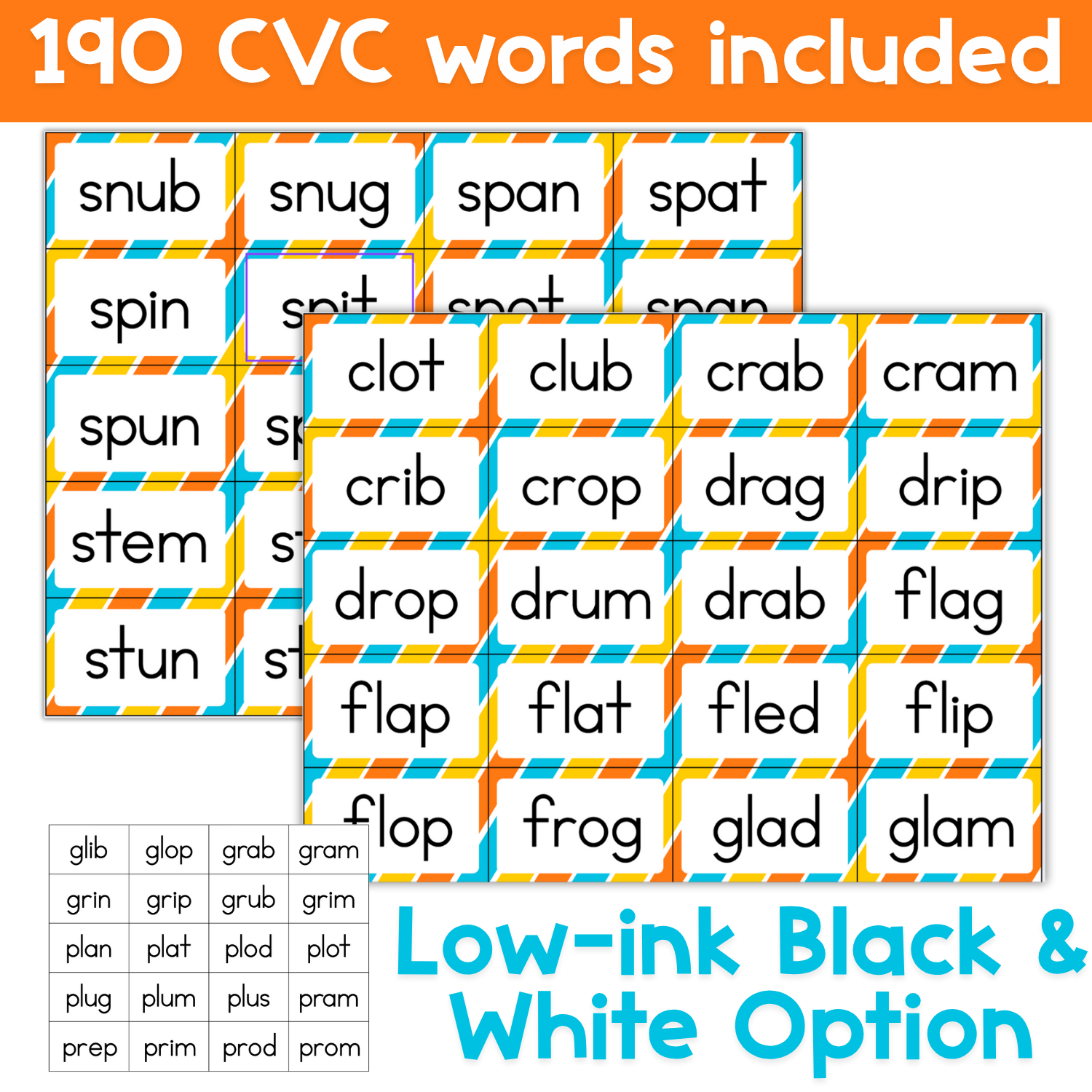 Over 175 CCVC word cards featuring short vowel words with beginning blends and digraphs