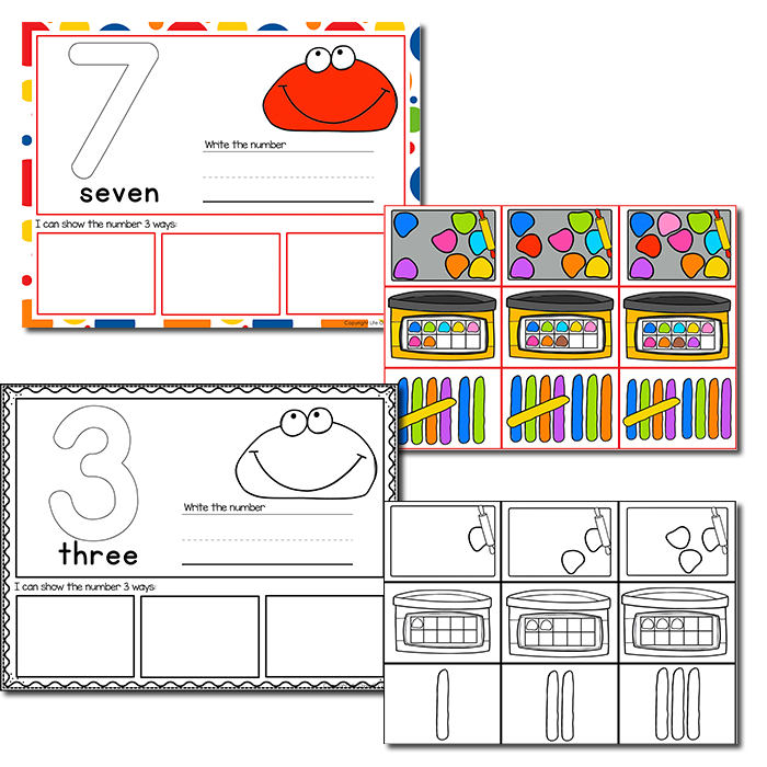 *For ease of storage, you can add Velcro to the number cards and squares and store the activity with the cards attached to the count and sort mats.