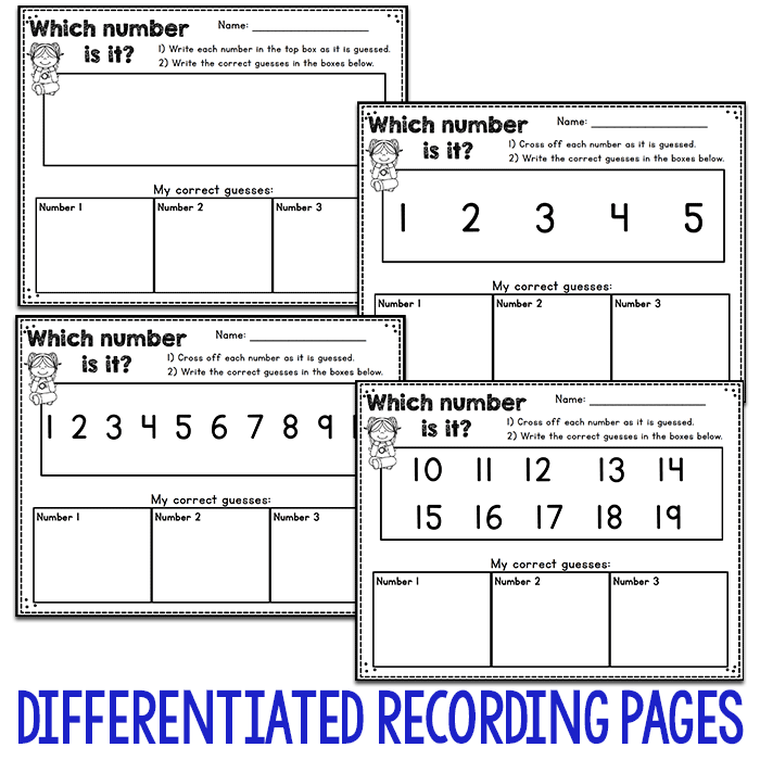 Optional differentiated recording sheets are included for additional practice with number recognition and number writing skills.