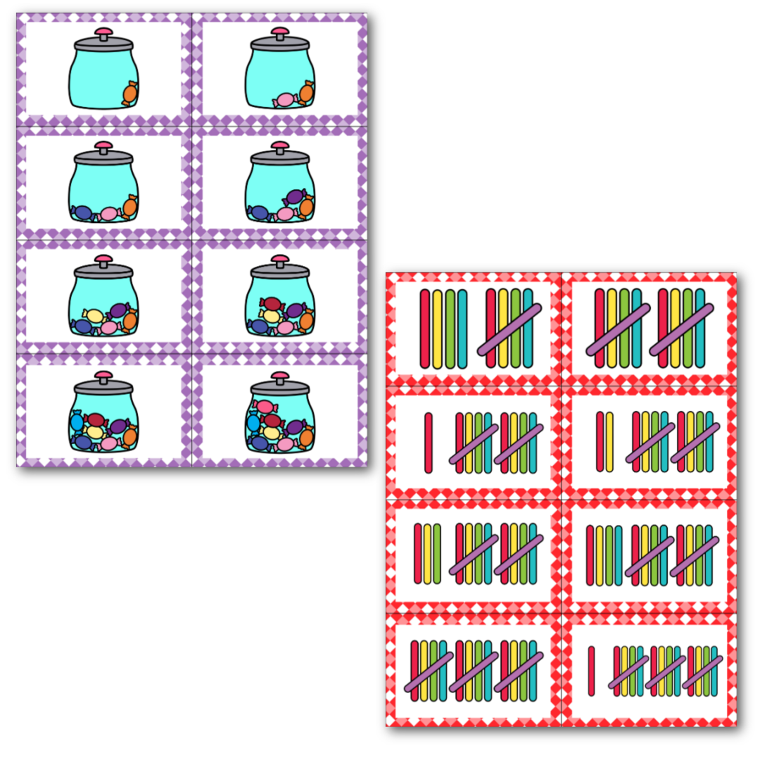 2) Print only two formats to start. Print one copy of one format and several copies of the other format. For example, use the number cards as your center pile. Print 3 copies of the word cards to focus on word recognition.