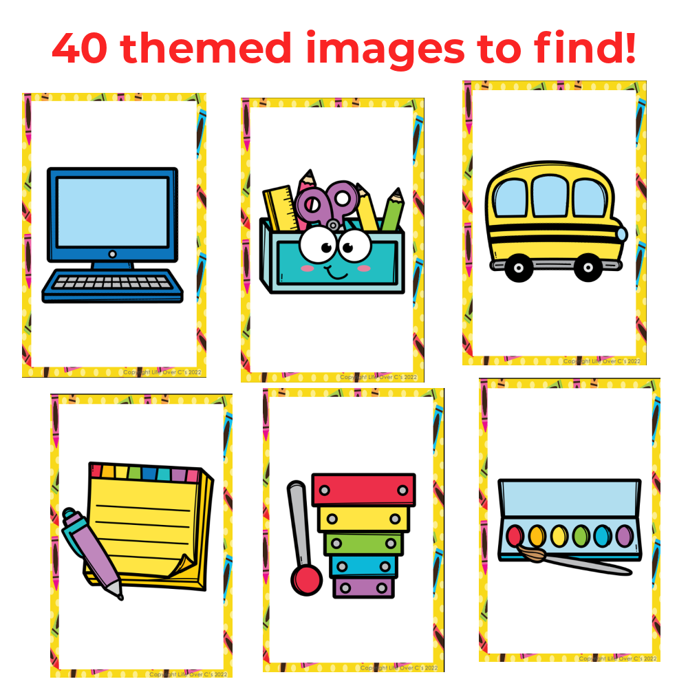 Whether you're wrapping up a back to school theme or just want a fun, low-prep game that keeps kids engaged while practicing important skills, this School Theme I Spy game is your go-to!