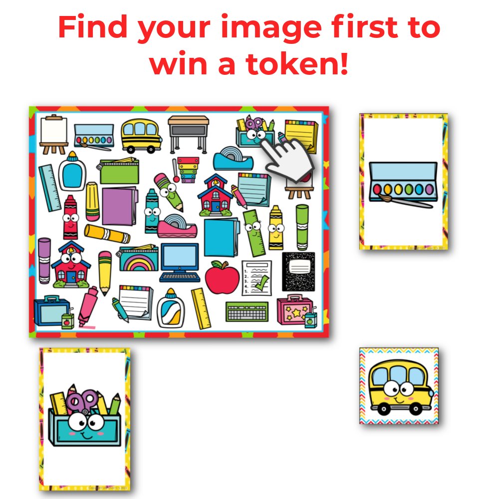 Matching – Each round requires students to match the image on their card to one of many similar images on the board, building attention to detail.