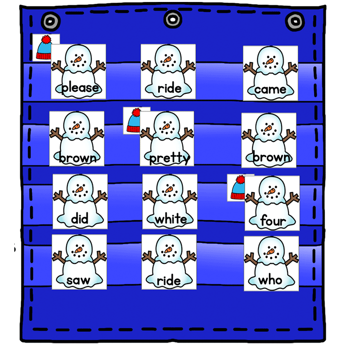 Looking for a fun and engaging small group, whole group or partner activity to teach sight words? This Snowman Tree themed sight word hide and seek pocket chart game is the perfect way to work on sight words in preschool, Pre-k, and kindergarten.