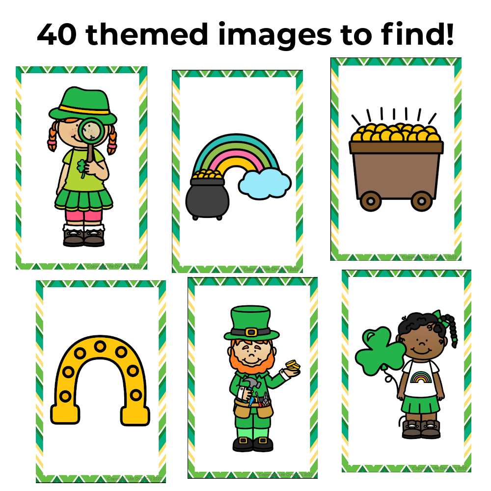 Whether you're celebrating shamrocks and rainbows or just want a fun, low-prep game that keeps kids engaged while practicing important skills, this St. Patrick's Day Theme I Spy game is your go-to!