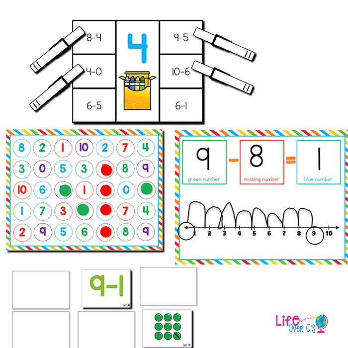 WOW! 20+ Hands-on Subtraction within 10 activities for your kindergarten math centers. Get every child excited to learn about subtraction with a wide variety of engaging activities.