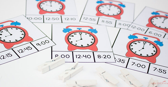 Your students will love reviewing telling time to the hour, to thirty minutes, to fifteen minutes and to five minutes with this set of clip cards. Telling time can be a difficult task for young learners, but review will be very enjoyable with these games! Students will find the digital time for the analog clock shown on the cards.