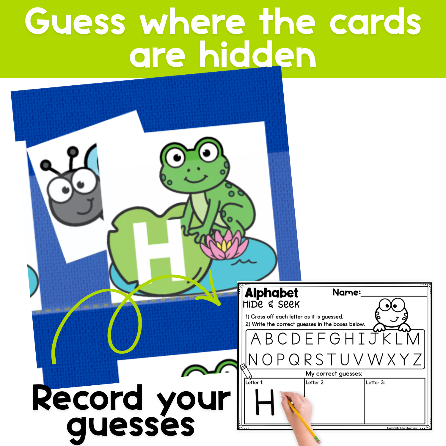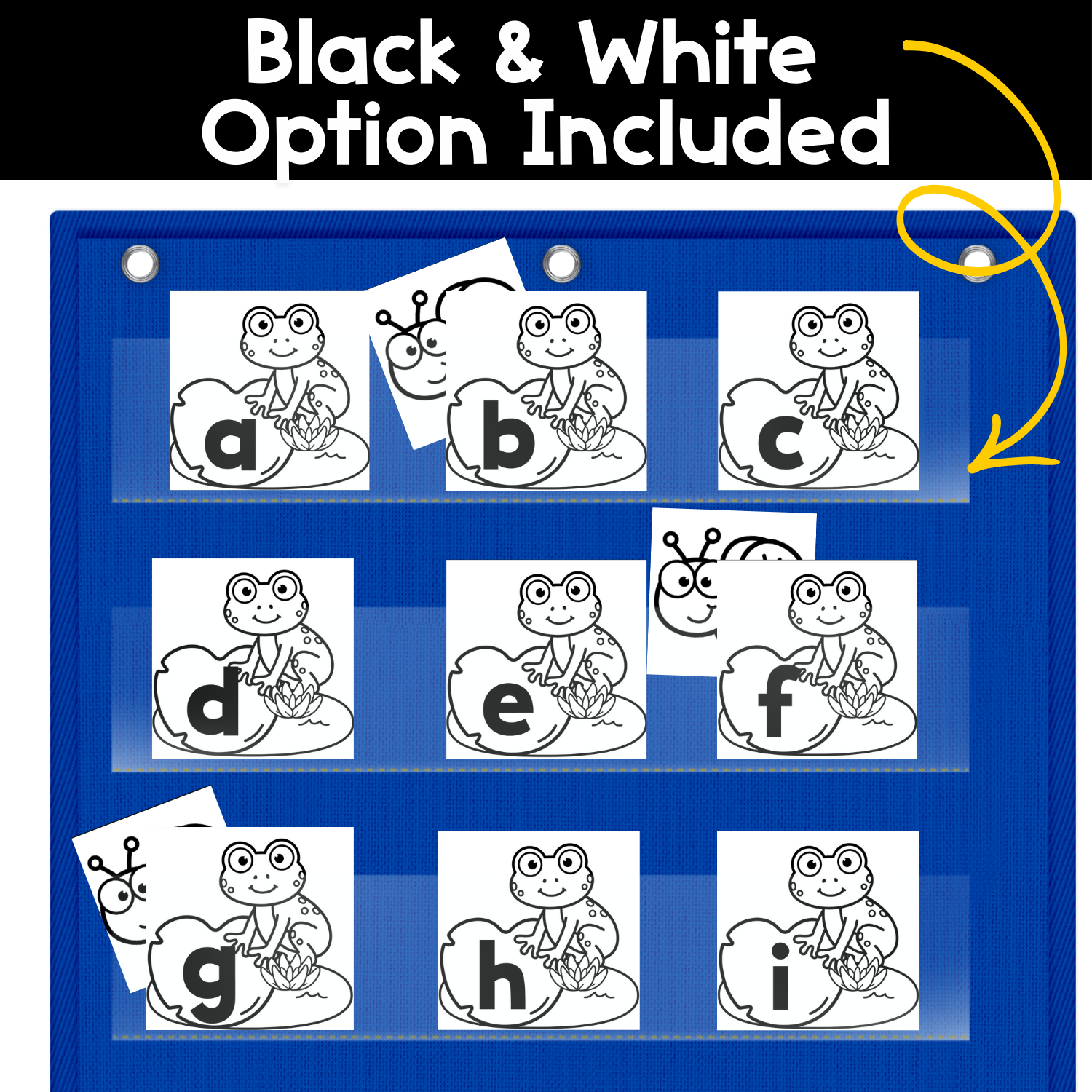 What’s Included in the Frog Alphabet Hide & Seek Pocket Chart Game: