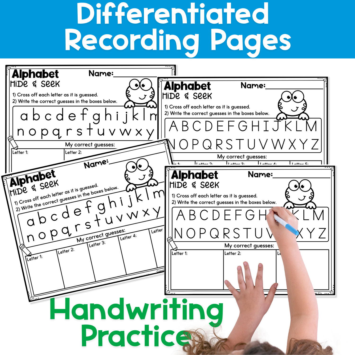 Use the recording pages to cross off guessed letters and record correct answers