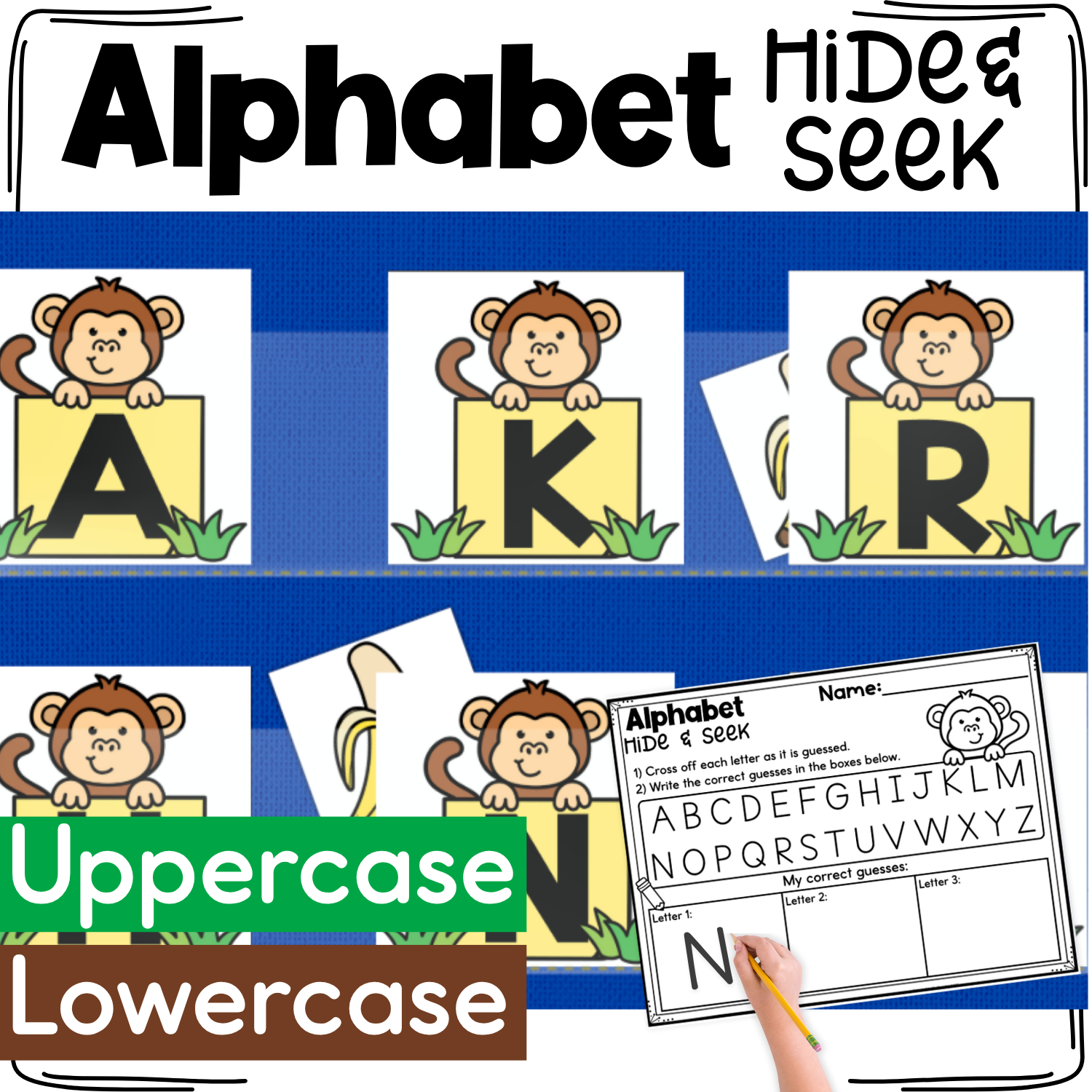 Make letter recognition consistent, engaging, and easy to differentiate with the Alphabet Hide & Seek Pocket Chart Game Bundle.