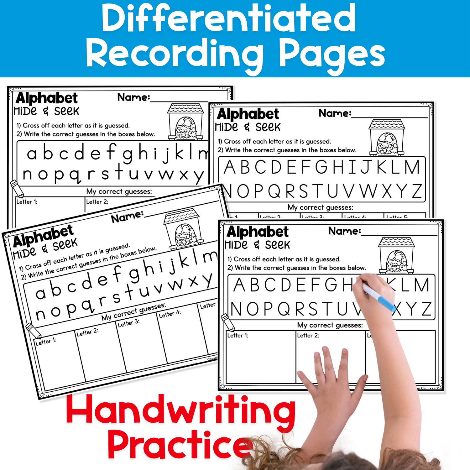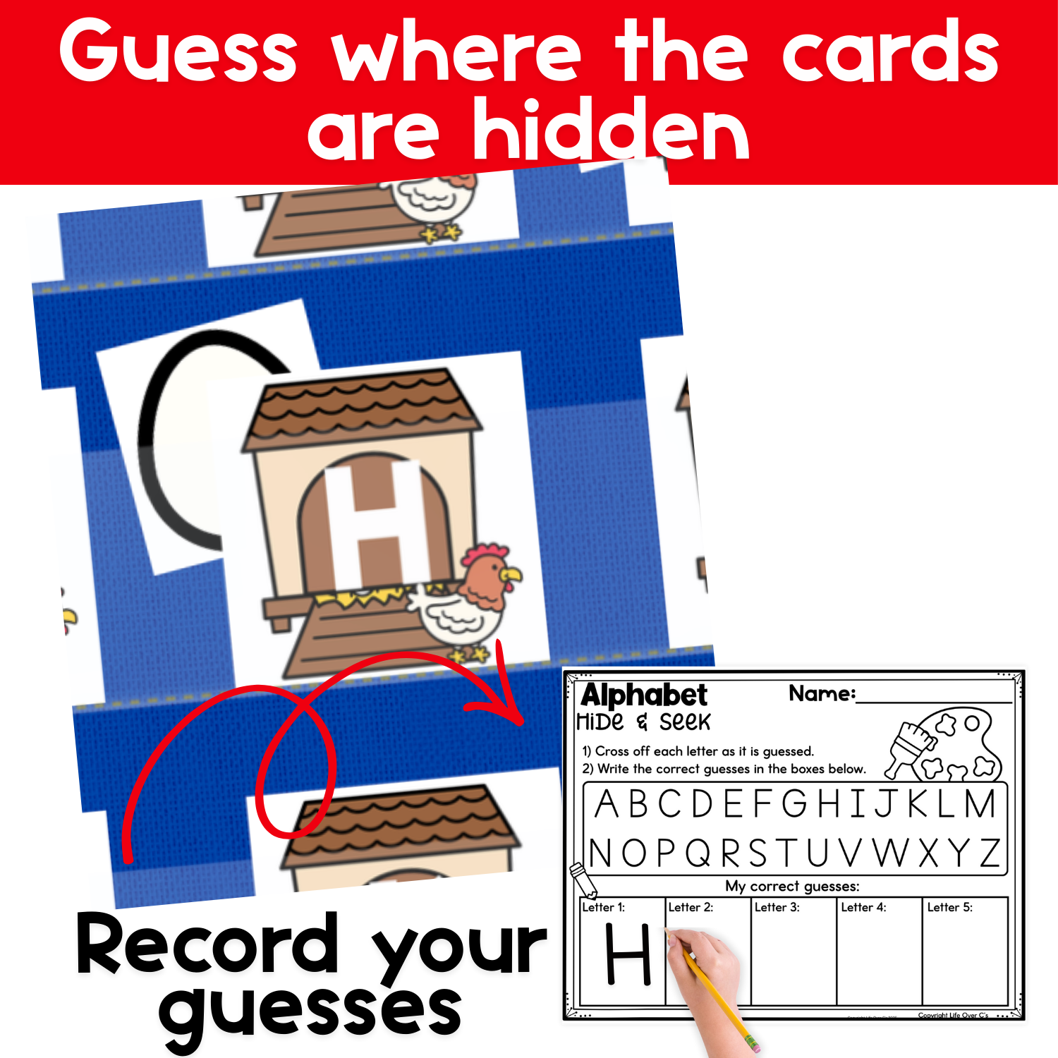 Record guesses (optional but recommended) Use the differentiated recording pages to cross off letters as they are guessed and write correct guesses. This adds an extra layer of alphabet practice while supporting early handwriting skills.