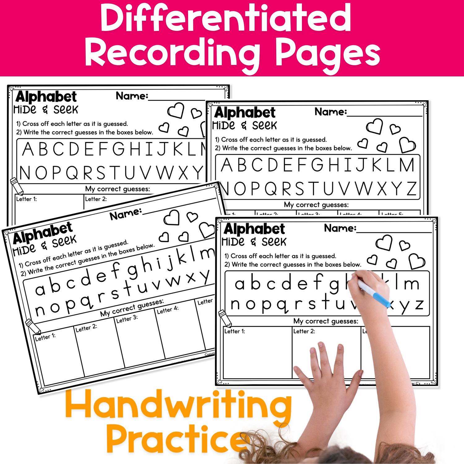 Use the recording pages to cross off guessed letters and write the correct letters found.
