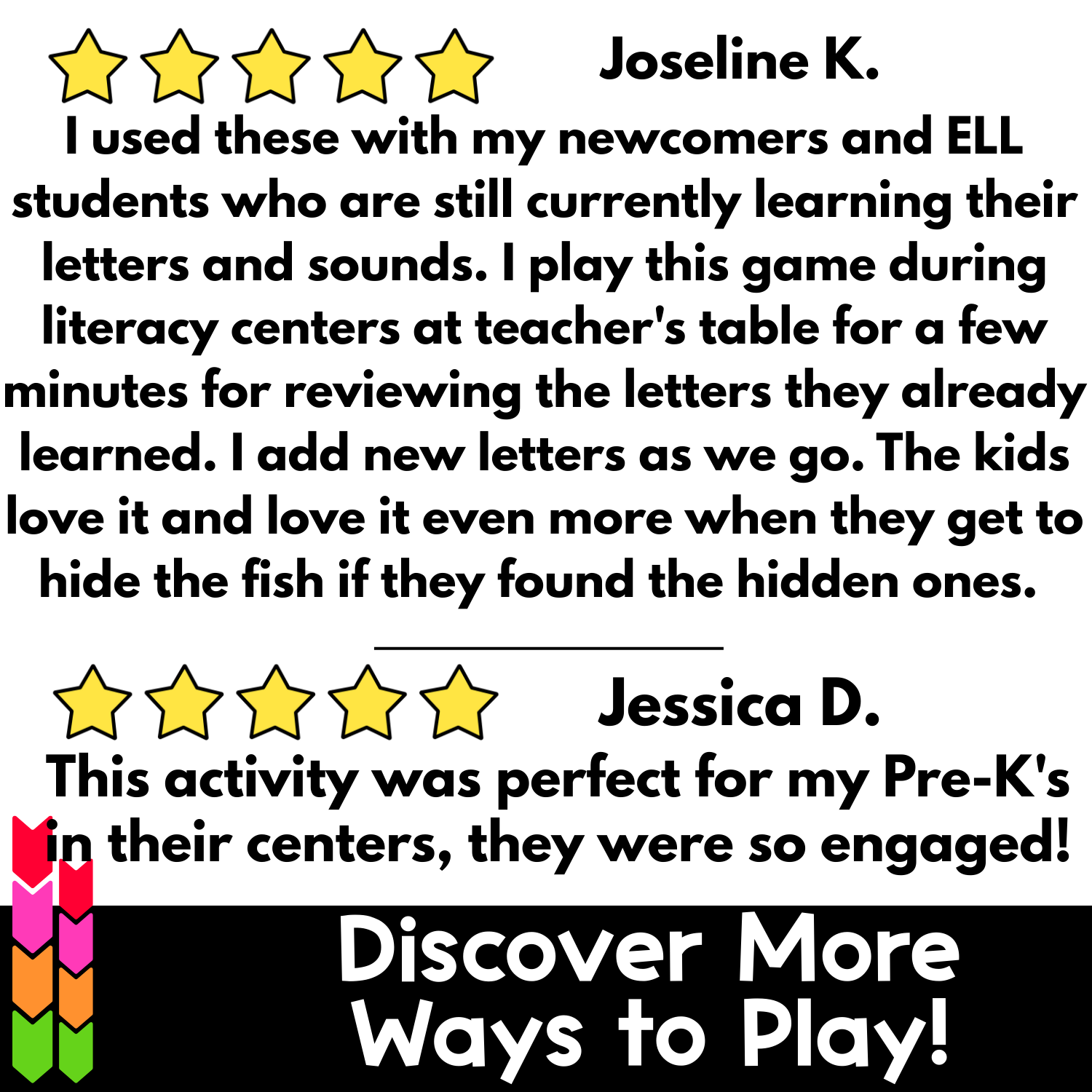 ⭐️⭐️⭐️⭐️⭐️ Alyssa K. wrote, “My preschool students love using this learning activity to find the surprise hidden behind the letters as they are beginning to recognize letters and sounds. It is nice to be able to use specific letters of focus to differentiate for a variety of student's needs. Thank you.”
