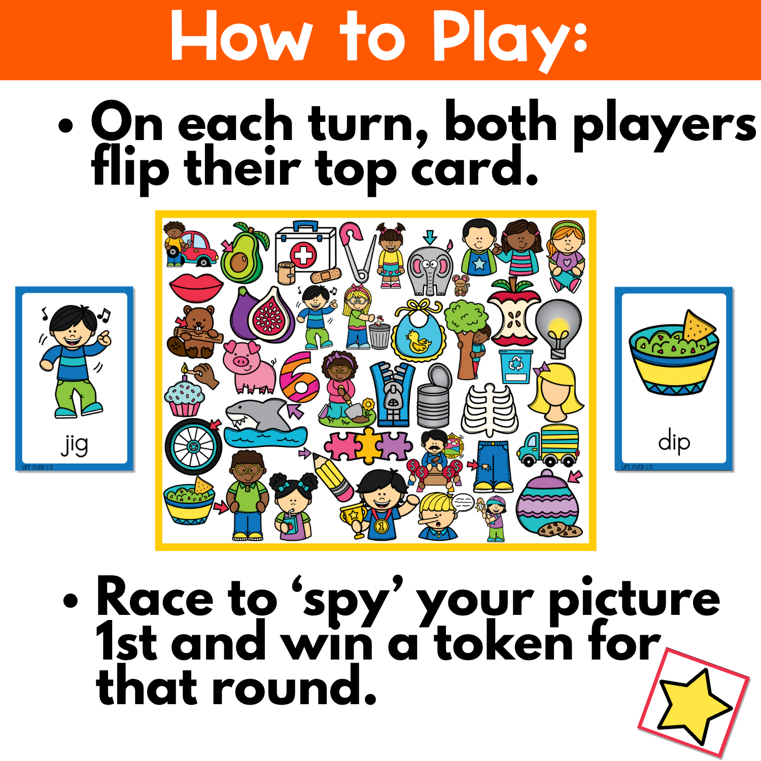 Turn phonics time into playtime with this fast-paced CVC 'i' I Spy Flip Game!