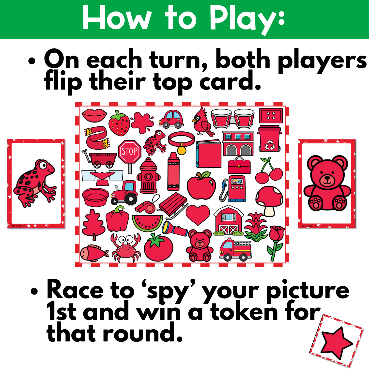 Bring a pop of color and excitement into your classroom with this Red Objects I Spy Board Game!