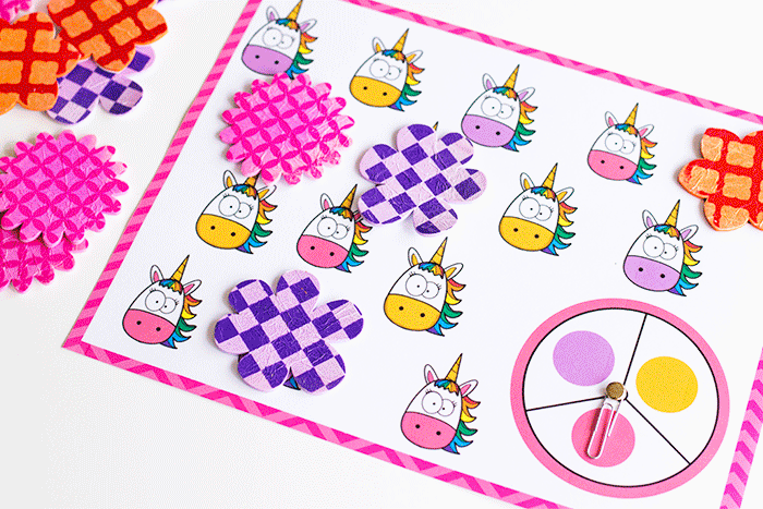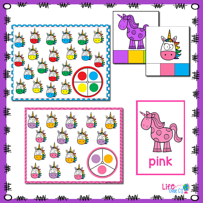 Spin & Cover Unicorn Games: Spin the spinner and cover the matching color unicorn- perfect for small groups, centers, or one-on-one play.